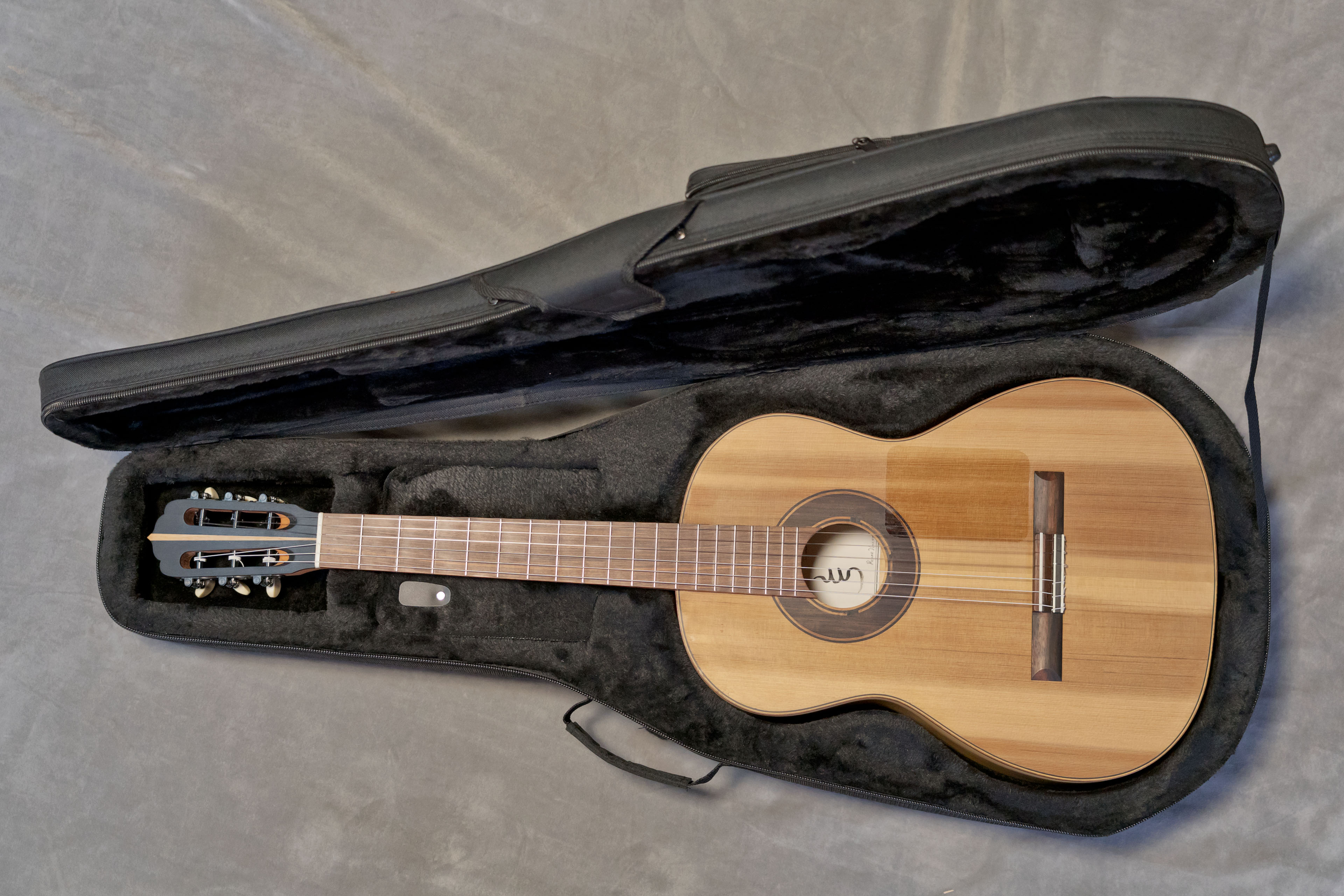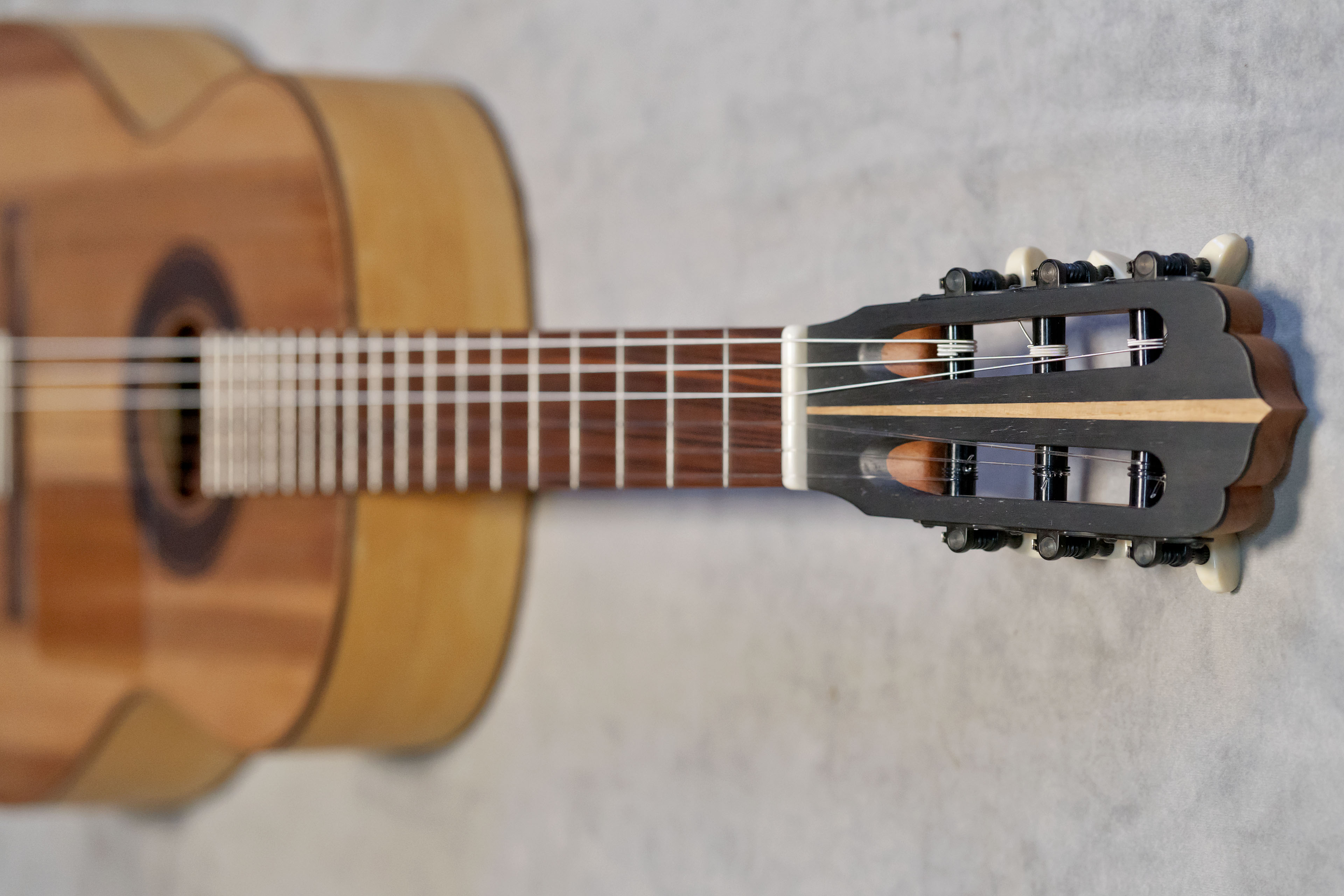 Les bois utilisés pour ce modèle ont été choisis pour leurs qualités acoustiques et leur adéquation avec l’esthétique et les exigences de la guitare flamenca. La table est en cèdre du Honduras : Cedrela odorata, apportant chaleur, rondeur et une réponse rapide. Le dos et les éclisses sont en cyprès méditerranéen : Cupressus sempervirens, bois traditionnel de la flamenca blanca, reconnu pour sa clarté, sa projection et sa richesse sonore. Le manche est en cedro : Cedrela odorata, apprécié pour sa stabilité et sa légèreté. La touche est en Pau Ferro : Machaerium scleroxylon, offrant une excellente définition, une attaque précise et un toucher agréable, tout en restant équilibrée sur le plan sonore. Le chevalet est en ébène amara : Diospyros celebica, choisi pour sa densité et sa rigidité, assurant une transmission efficace des vibrations et une bonne tenue de l’accordage, dans une configuration flamenca à 12 trous.